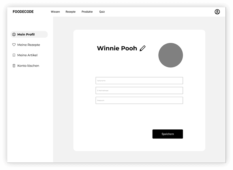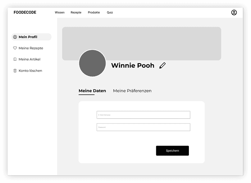 The first version of our profile page focused on simplicity: users could view saved recipes and articles and edit only basic information.