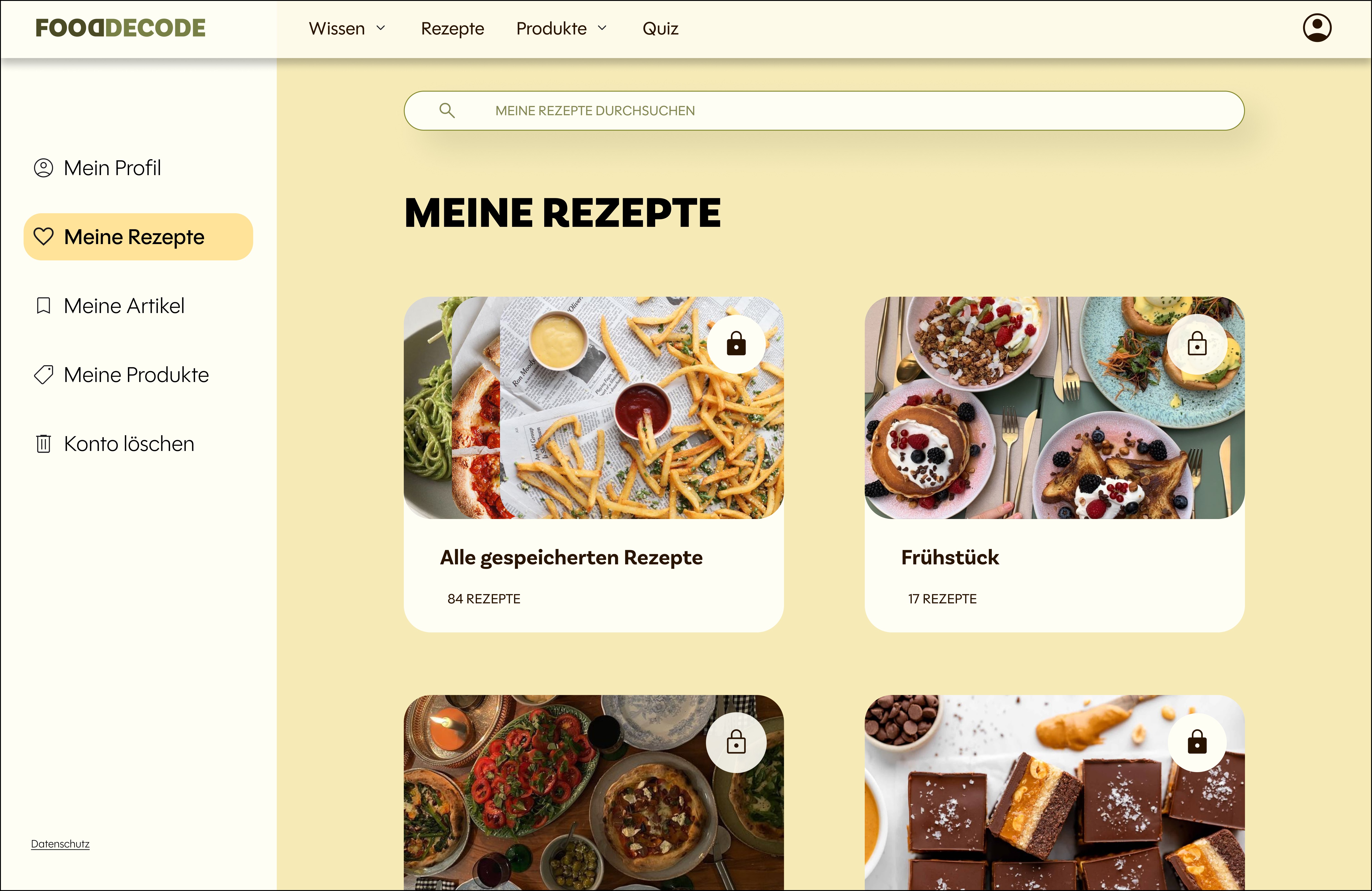 Creating a profile is optional, but it adds value: users can save recipes and articles and organize them into folders for quick access.