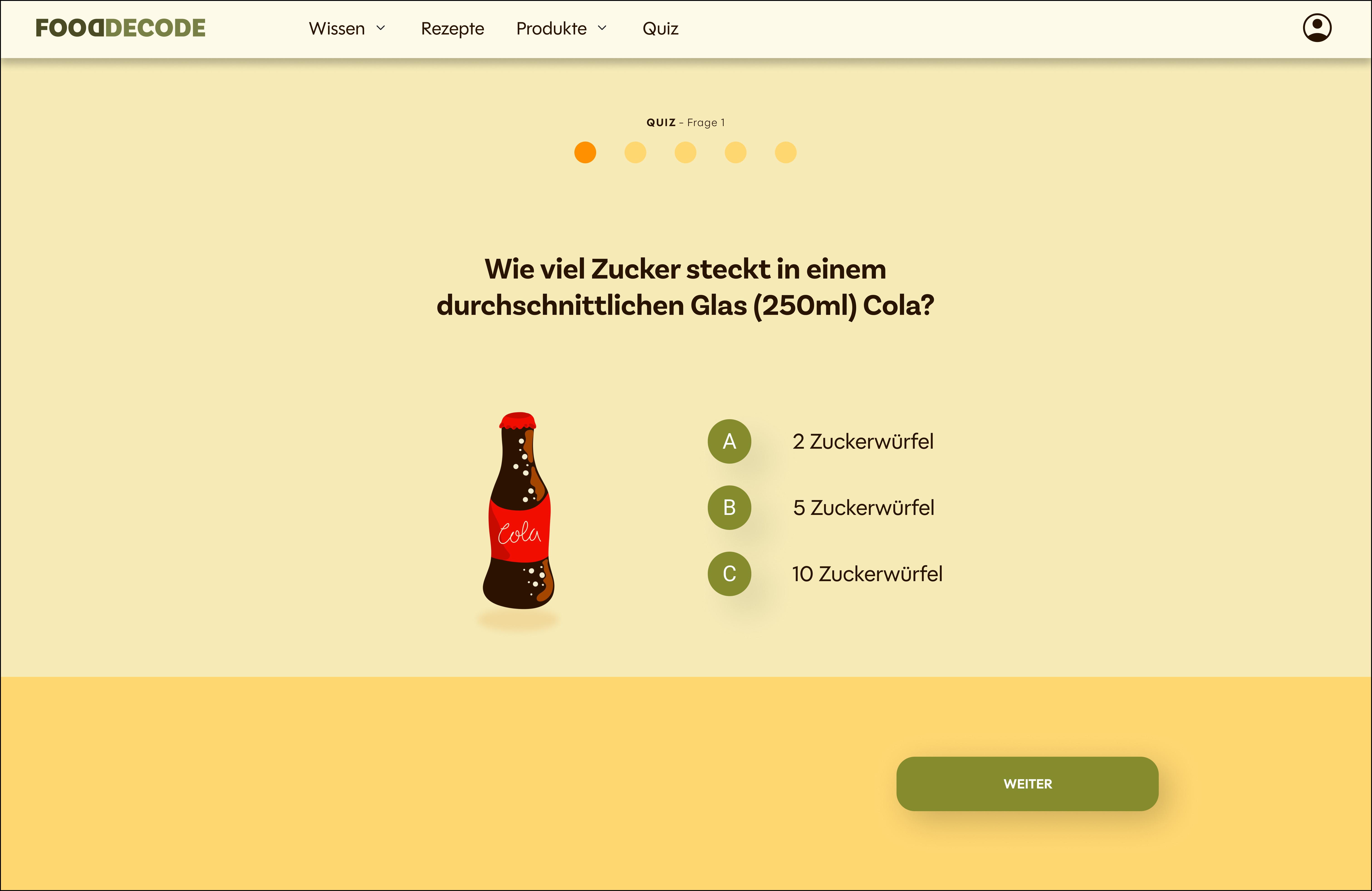 The homepage links directly to the quiz: it's a playful way to explore the topic and spark curiosity.