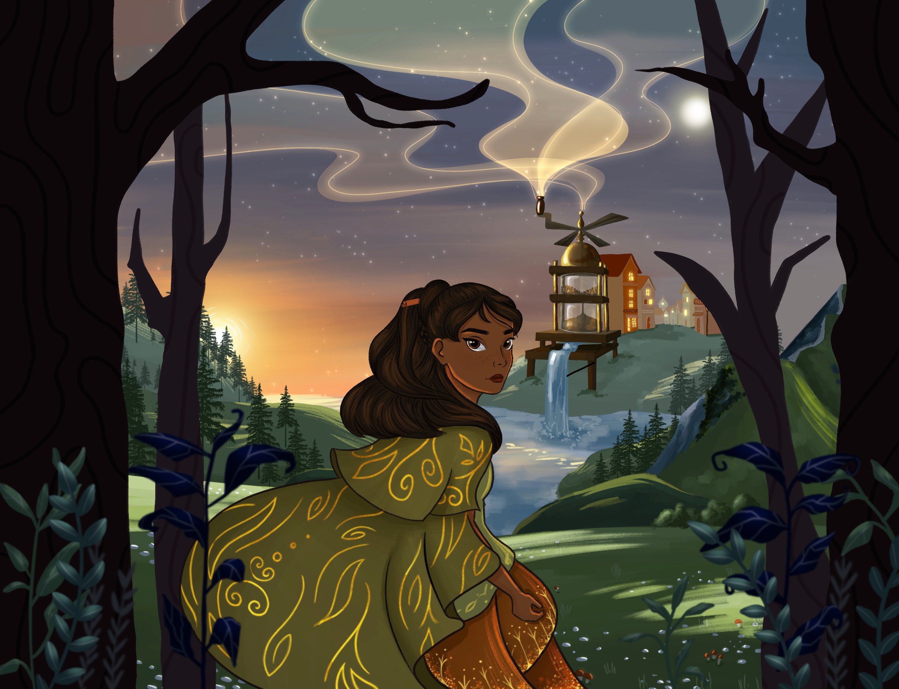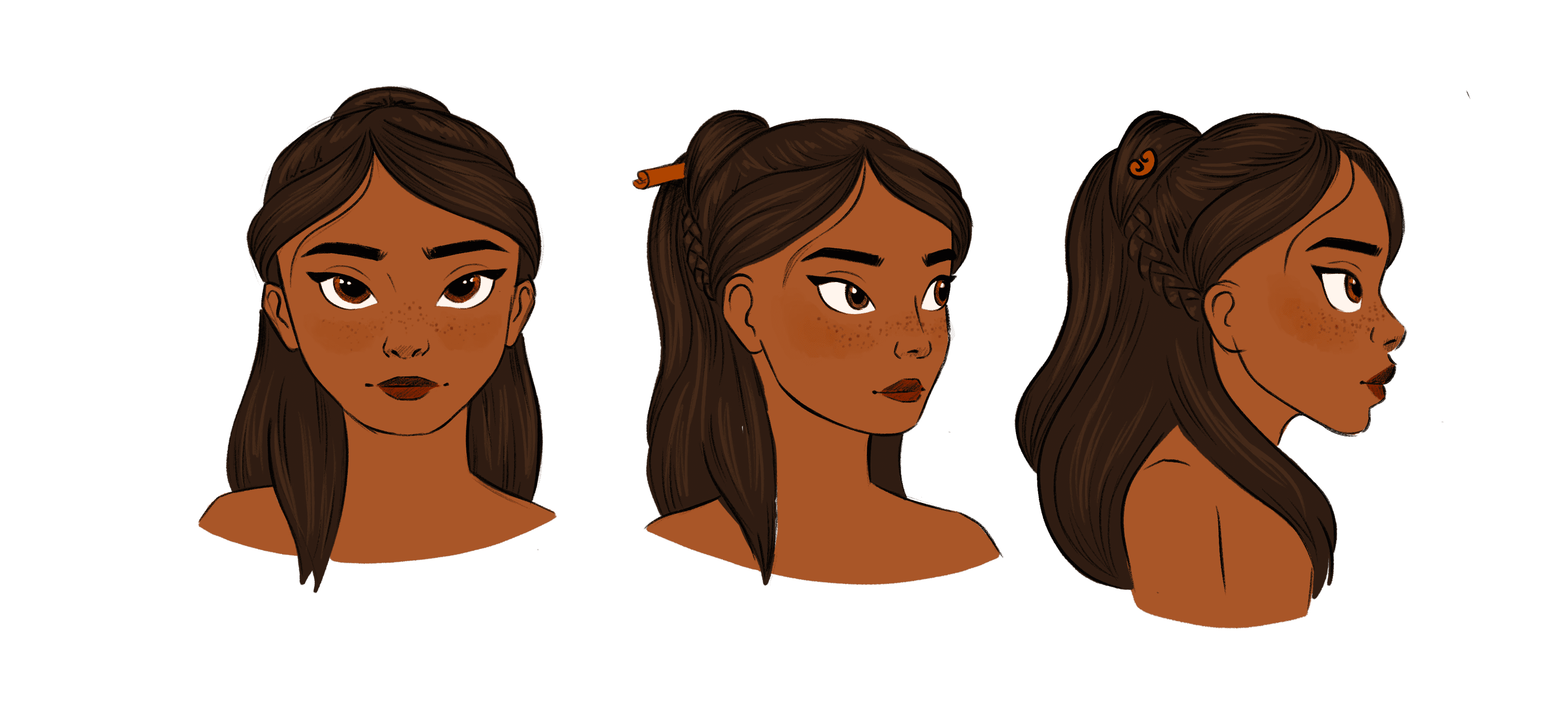 Before sketching, I wrote a small backstory: Cinna comes from a world centered around spices. She represents cinnamon but is eventually cast out, a theme reflected in her clothing. Her skirt ultimately combines multiple spices, symbolizing her growth beyond a single identity.